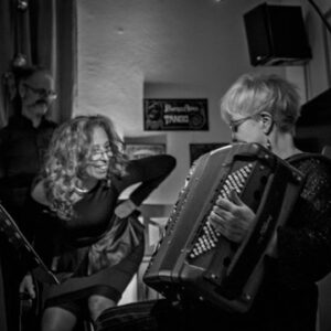 Es war eine späte Liebe, aber dafür umso leidenschaftlicher: ich hing mir mein erstes Akkordeon um, fing an zu spielen und hänge es seitdem nur ungern wieder ab. Ich nahm Unterricht, studierte und entwickelte eine eigene Tonsprache, unter Anderem durch Studien beim großen Meister des Bandoneonspiels, Raul Jaurena. Die Weltmusik begann mich zu packen, erst die italienischen Canzoni fürs Theater, dann Musette und Tango und am meisten: die Klezmer-Musik.